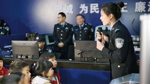 “警营开放日”活动期间,民警和小朋友们开展互动